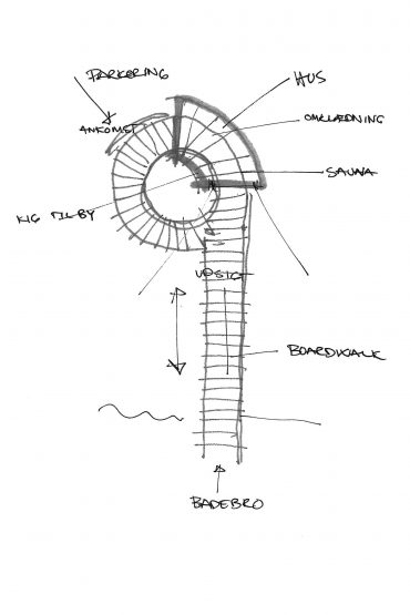 I designprocessen har vi taget udgangspunkt i både konteksten og de menneskelige behov: Bygningen skal falde smukt ind i det omkringliggende landskab og skabe mulighed for mange forskellige oplevelser for alle, der kigger forbi for at nyde den smukke fjord.