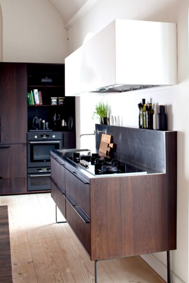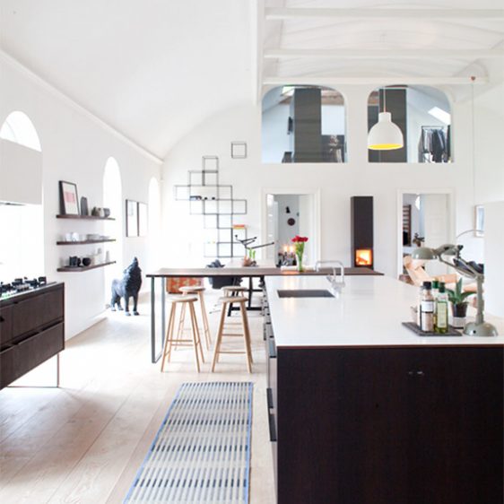 Indretningen af huset er medtænkt allerede undervejs i ombygningsprocessen, hvilket gør det muligt at skabe unikke løsninger, der passer perfekt til boligens æstetik og kravene til funktion, fx er køkkenet er et snedkerkøkken, der er tegnet specielt til huset.