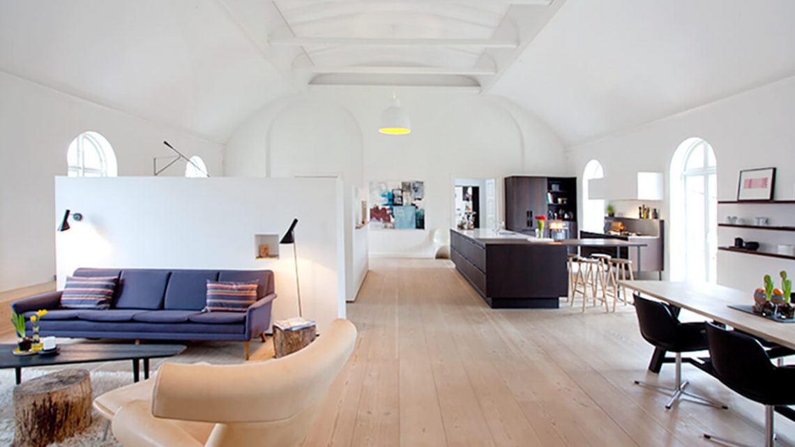 Det tidligere menighedshus fra 1889 er blevet forvandlet til en moderne og funktionel familiebolig. I ombygningen er der lagt særlig vægt på at bevare husets sjæl og dets særlige karakteristika som fx den store menighedssal, der er placeret centralt i huset og har over 5 meter til loftet. Det 130 kvadratmeter store rum rummer i dag familiens køkken, stue og kontor samlet i et og giver rig mulighed for at være sammen, selvom familiemedlemmerne er optaget af hver sit.