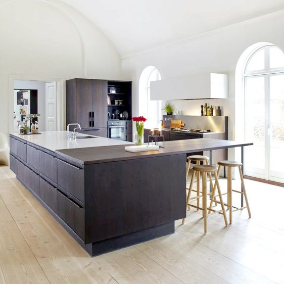 Vi laver unikke løsninger, så du kan få det præcist, som du vil have det. I Hermon har det store rum, som er husets hjerte, har flere unikke snedkerløsninger, blandt andet et køkken i røget, olieret eg og et smukt spisebord med en speciallavet bordplade i ekstra brede douglasplanker.