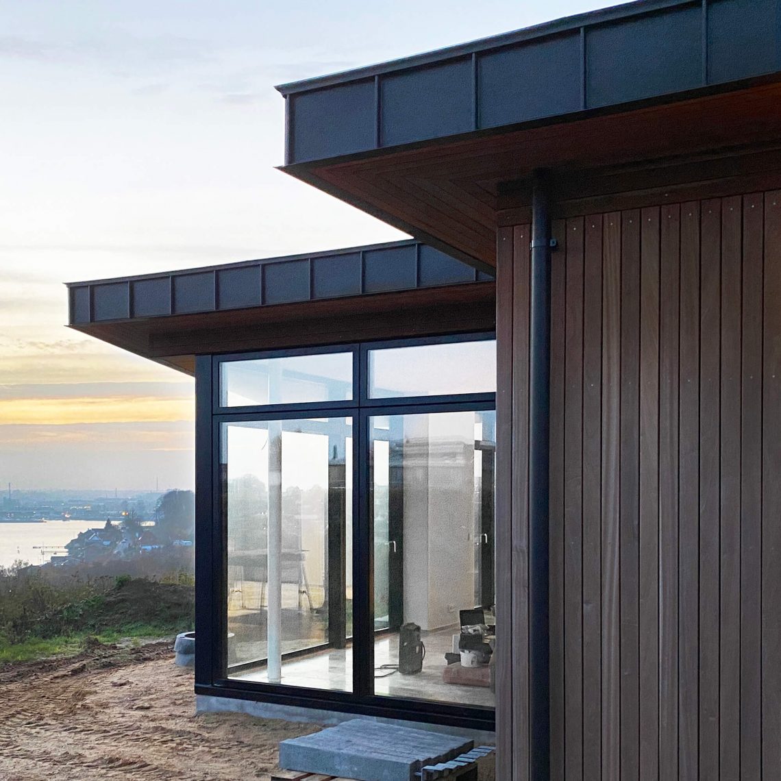 Lige på kanten af bakken med udsigt til by, fjord og fredskov ligger en villa i et smukt, modernistisk formsprog. Vi har tænkt landskabet ind i arkitekturen og skabt en villa med forskudte rum, der giver mulighed for store vinduespartier, der trækker omgivelserne ind i rummene og et stort udhæng skærmer for solen om sommeren.