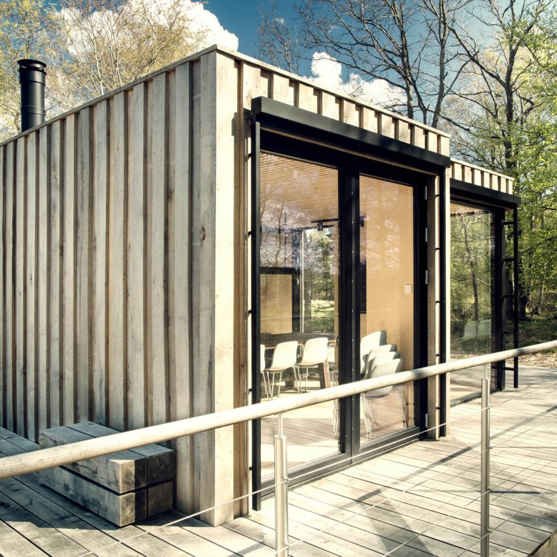 Hytten er det mødelokale, som du altid har ønsket dig at arbejde i – og beliggenheden er helt ude i skoven. Det enkle træhus i råskårede egeplanker falder smukt ind i de naturskønne omgivelser i Midtjylland.