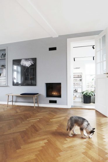Om- og tilbygning af eksisterende murermestervilla, så der er plads til både familieliv og showroom. Her lever et klassisk og elegant formsprog side om side med det mere et moderne og råt udtryk: her er både sildebensparket og betongulv.